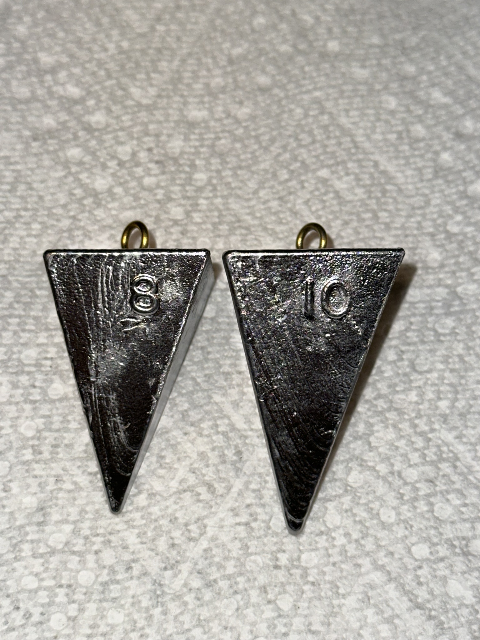 8 oz or 10 oz. Pyramid Lead Fishing Sinkers with #2 Brass Eyes.